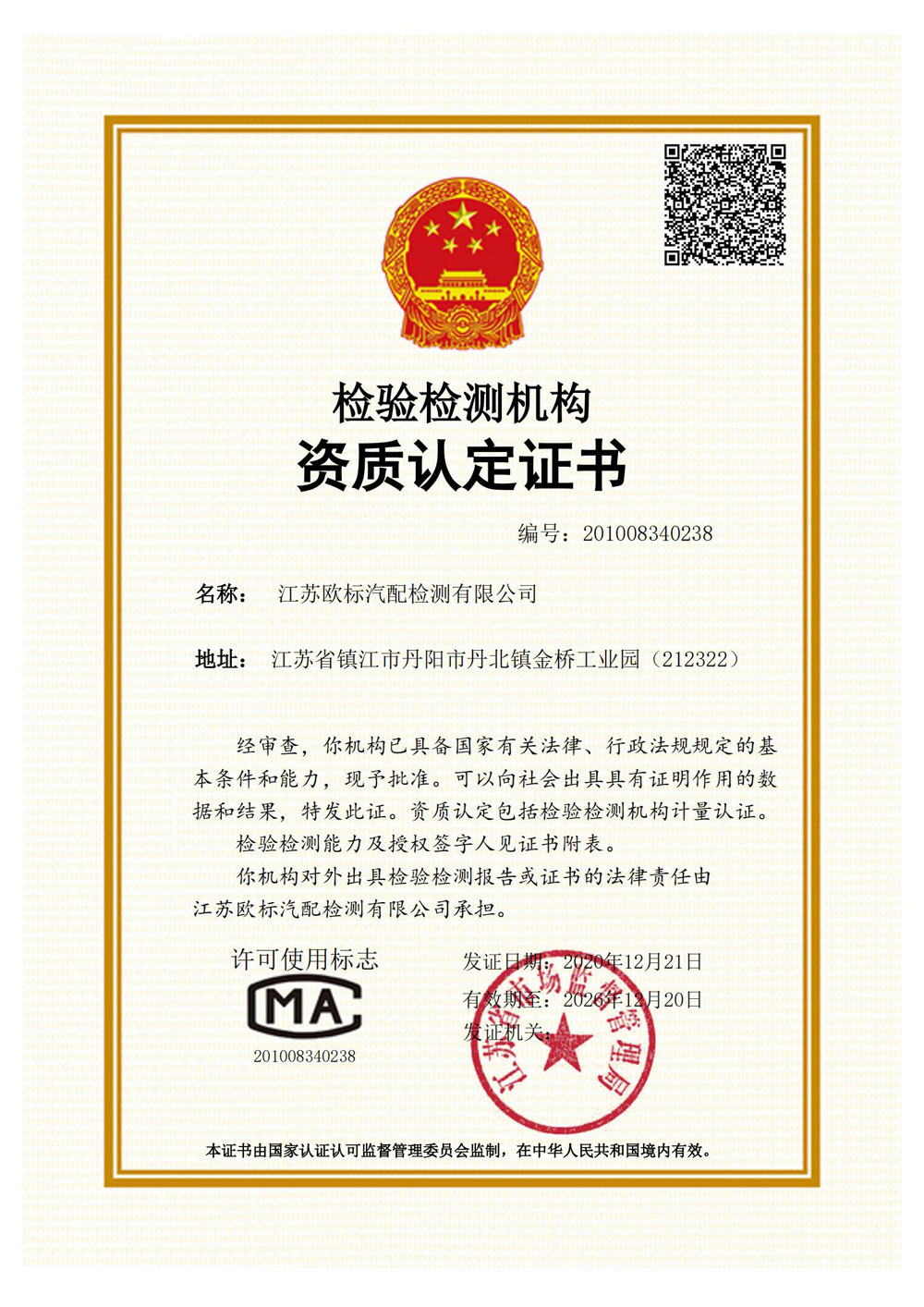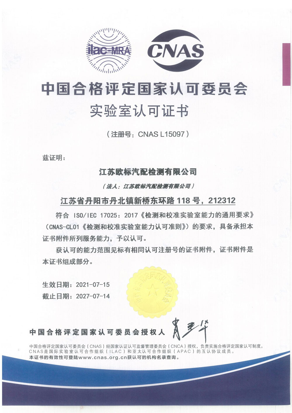 您好,歡迎光臨江蘇歐標汽配檢測有限公司官網!